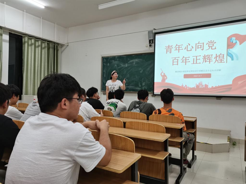 6月9日,建筑学院在致知楼C206教室举行“青年心向党,百年正辉煌”主题宣讲,此次宣讲会由校青年宣讲团成员、城乡规划专业学生党支部宣传统战委员蔡玉主讲,2019级和2020级城乡规划专业全体学生参加。