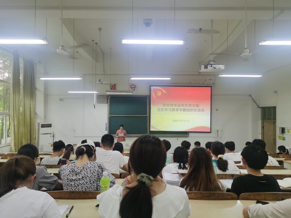 为进一步学习贯彻习近平新时代中国特色社会主义思想,深入开展党史学习教育,7月1日下午,药学类专业学生党支部在求知楼A105召开党史学习教育专题组织生活会,党支部全体党员参加会议,会议由党支部书记姜毅主持。