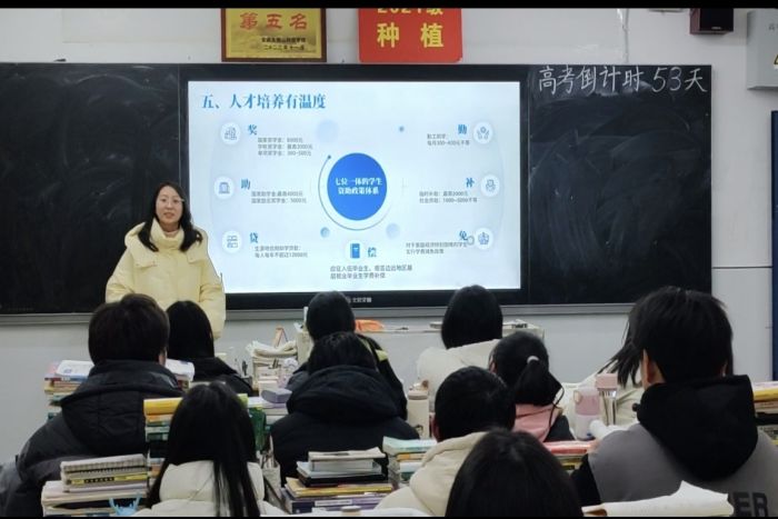 团队成员首先看望了高中班主任和授课老师,表达思念与感激之情。接着团队成员王娜结合校史和自己的大学生活与学弟学妹进行交流,积极宣传安科办学成就与人才培养特色,讲好安科故事,为高三的学子解疑答惑,搭建安庆大别山科技学校与安科之间沟通的桥梁。随后团队成员王佳璐分享了自己在安科这半年中的快乐和收获,表达了对母校的感谢和怀念,以及对安科的热爱和感激。最后团队成员储源远分享了一些校友的励志故事,激励学弟学妹们努力拼搏、追求卓越。