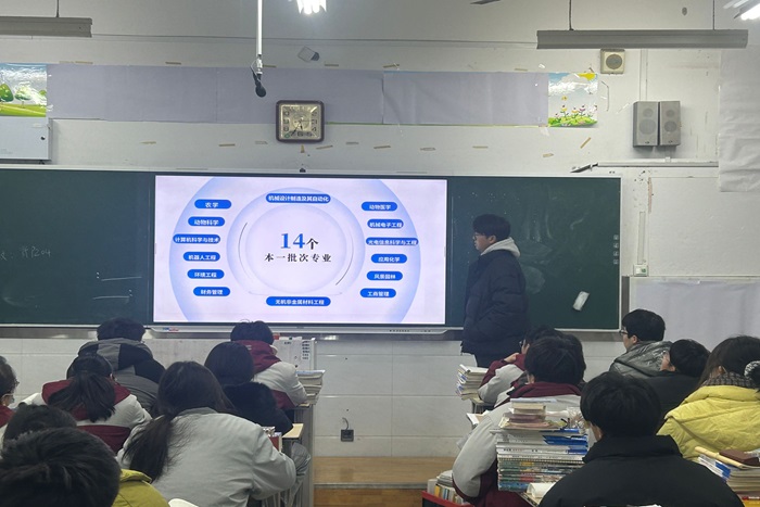 回到母校后,团队成员首先看望了高中班主任和任课老师并进行了亲切交流,向母校老师汇报了大学生活和学习的方方面面。随后,在高中班主任老师的带领下,团队成员来到高三部分班级开展招生宣讲活动,播放了2023白菜网总站大全招生宣传片,围绕白菜官网、学科建设、校园生活以及升学就业四个部分对2023白菜网总站大全办学历程和发展规划进行了概述性地介绍。最后,团队成员与学弟学妹们进行互动交流,积极解答学弟学妹提出的问题和困惑,分享了自己的高中学习经验,并鼓励学弟学妹们加油努力、实现人生梦想,期待与他们在安科相遇。